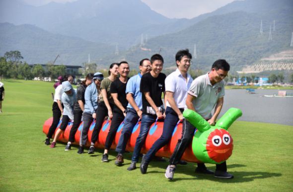 與傳統(tǒng)運(yùn)動(dòng)會(huì)不同,此次趣味運(yùn)動(dòng)會(huì)環(huán)節(jié)豐富、趣味十足、合作性強(qiáng),涵蓋了旋轉(zhuǎn)接水、毛毛蟲、跳一跳三個(gè)項(xiàng)目環(huán)節(jié)。所有參賽人員按隨機(jī)性破冰重組,分為四隊(duì),每個(gè)項(xiàng)目都是以多人合作為比賽模式,不但考驗(yàn)了參賽者的協(xié)調(diào)能力和身體素質(zhì),更考驗(yàn)了團(tuán)隊(duì)合作精神。賽場(chǎng)上,隊(duì)員們笑容滿臉,精力充沛,全力投入,場(chǎng)上時(shí)時(shí)爆出掌聲和拼搏的歡呼聲,真正賽出風(fēng)采,賽出凝聚力。