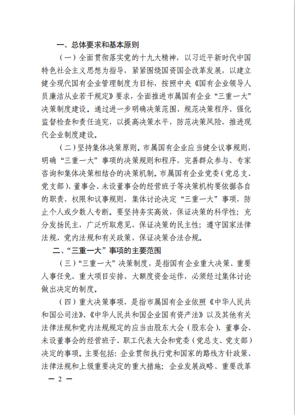 關于進一步規(guī)范市屬國有企業(yè)貫徹落實“三重一大”決策制度實施意見(國資黨委[2020]21號)