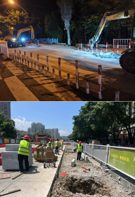 小溪路口地處老城區(qū)、蓮東片區(qū)、新城區(qū)交界處,群眾反映該路口交通標(biāo)識(shí)不清、行人過街不便等,存在安全隱患,為此,市委、市政府及市住建局等相關(guān)部門高度重視,決定由市政集團(tuán)所屬企業(yè)市城投公司對(duì)該路段實(shí)施提升改造,重點(diǎn)實(shí)施道路白改黑、雨污分流改造、綠化提升、道路標(biāo)識(shí)完善、交通安全設(shè)施提升等建設(shè),項(xiàng)目總投資約3500萬元。工程于7月下旬開工建設(shè),目前正在進(jìn)行混凝土病害處理、雨水管網(wǎng)開挖鋪設(shè)、路沿石安裝及各管線遷改等施工作業(yè)。
